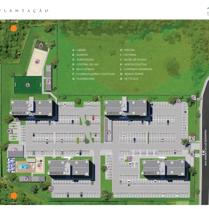 1 - Campinho Gramado; 5 - Horta coletiva;