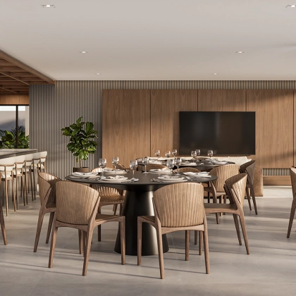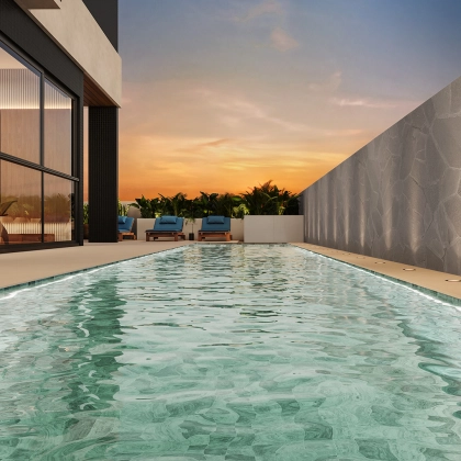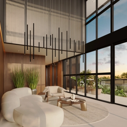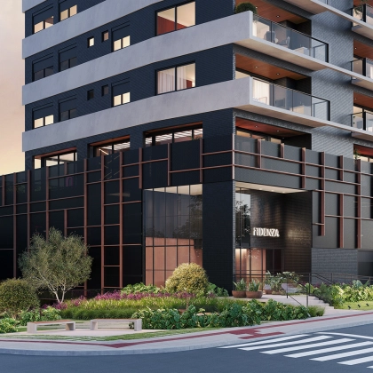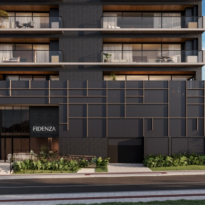“As linhas verticais e horizontais do Fidenza Residencial se inspiram na arte modernista do pintor Piet Mondrian. Retângulos assimétricos alinhados em um conjunto de camadas se unem para representar o embasamento e a fachada do Fidenza, dando vida às principais características do empreendimento.”