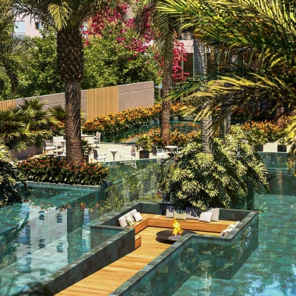 Assinada pelo renomado escritório de paisagismo Takeda Design, o Garden Park traz a tendência mundial que segue os princípios da neuroarquitetura e psicologia positiva. Essa prática melhora aspectos da nossa vida como saúde e bem-estar, fazendo com que as pessoas se conectem novamente com elementos naturais dentro dos ambientes projetados.