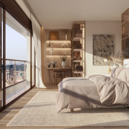 Ambientes integrados que aproximam as relações, abundância de luz natural, ventilação priorizando o bem-estar e uma ampla área de lazer com os mais diversos ambientes. O paisagismo é outro detalhe que chama atenção, trazendo a sensação de se estar em meio ao verde, mesmo vivendo bem no centro de uma das cidades mais agitadas do litoral catarinense, onde tudo acontece.