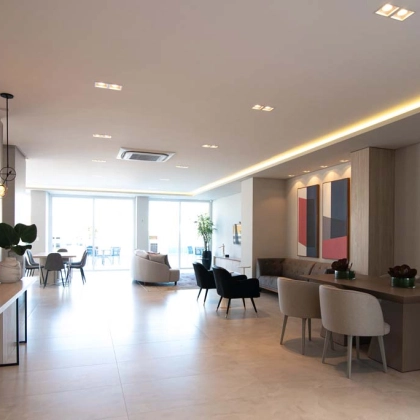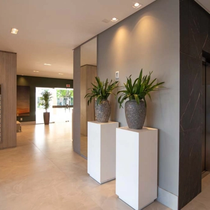 Belfiore Residencial, o Hall de entrada traz a beleza e o fascínio das flores, cada detalhe reflete a delicadeza das pétalas. Com elegância e acolhimento, proporcionando harmonia entre os ambientes, além de dar as boas vindas de uma forma especial todos os dias.